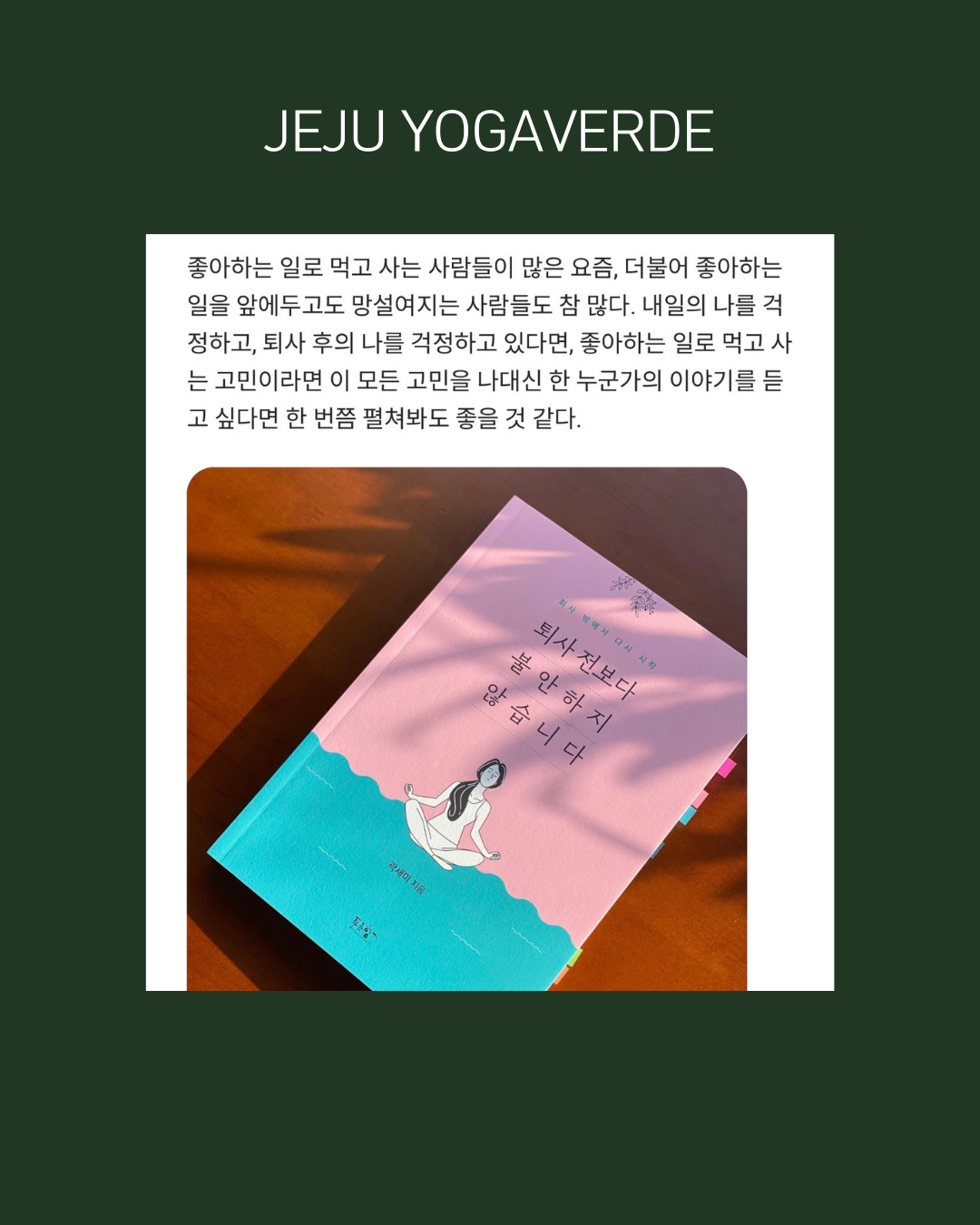 요가베르데 원장이자 에세이 작가가 쓴 두 권의 책을 소개해요.